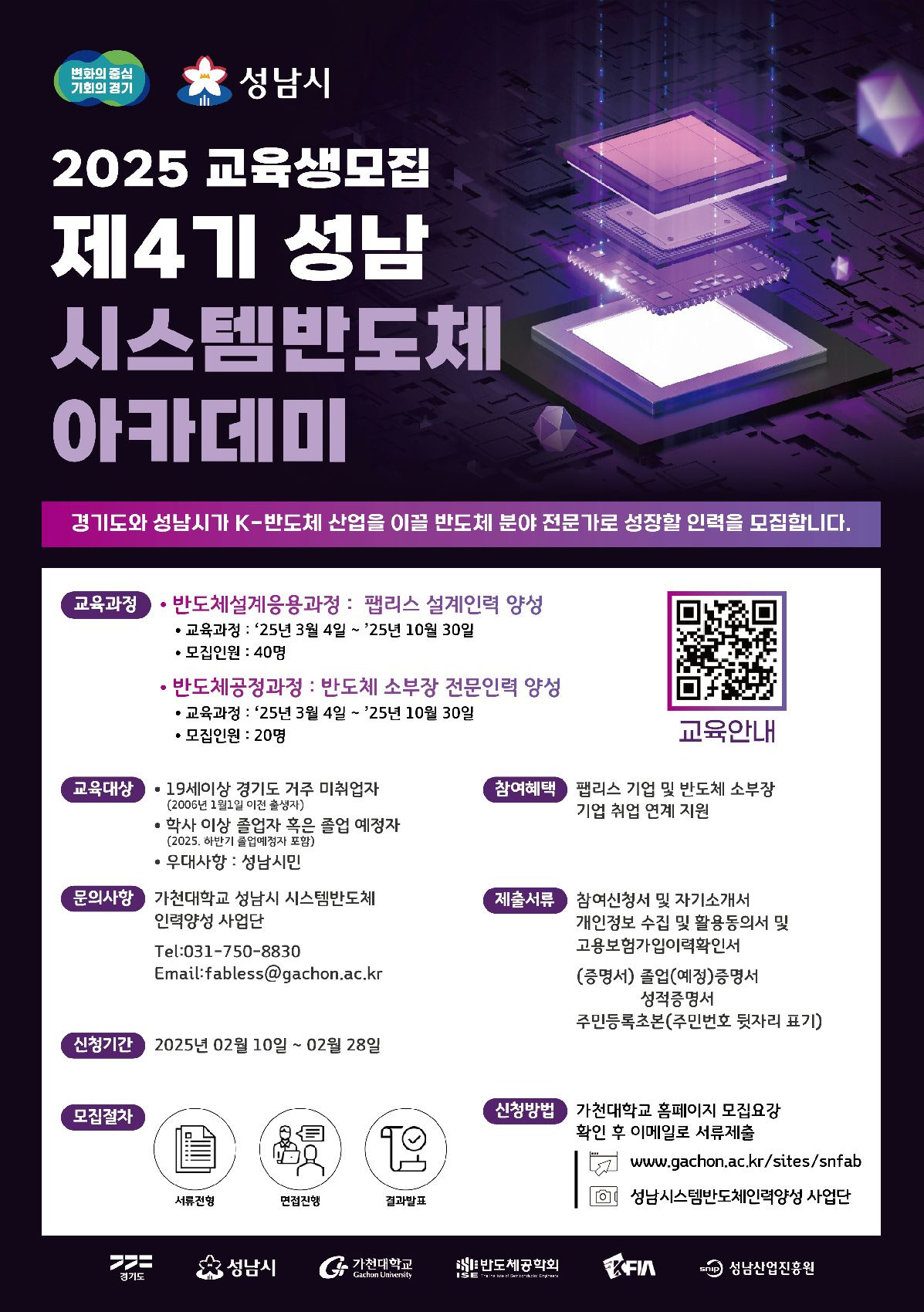 성남시와 가천대학교가 공동 주관하는 2025년 제4기 성남시 시스템반도체 아카데미 교육생을 모집합니다!
