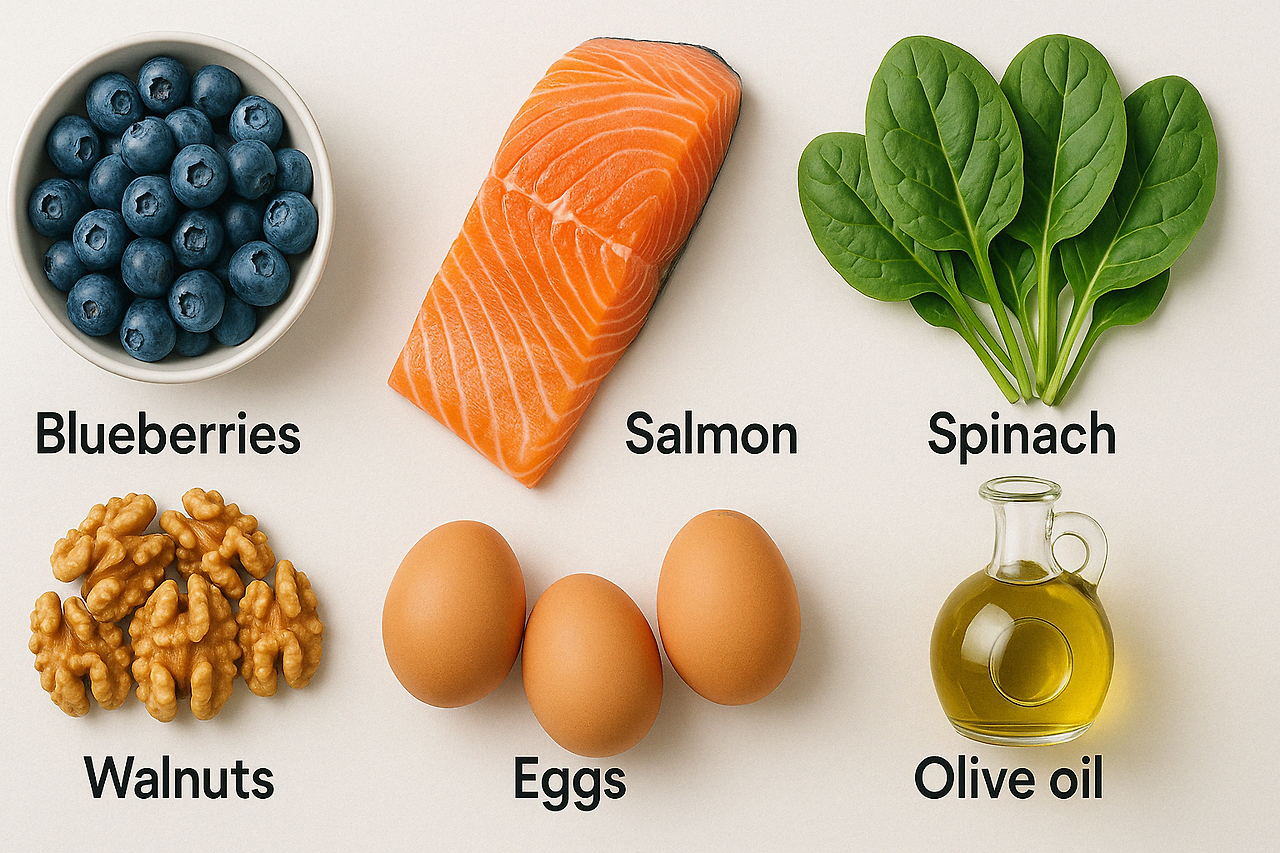 ✅ **뇌에 좋은 음식(블루베리, 연어, 호두 등)**,