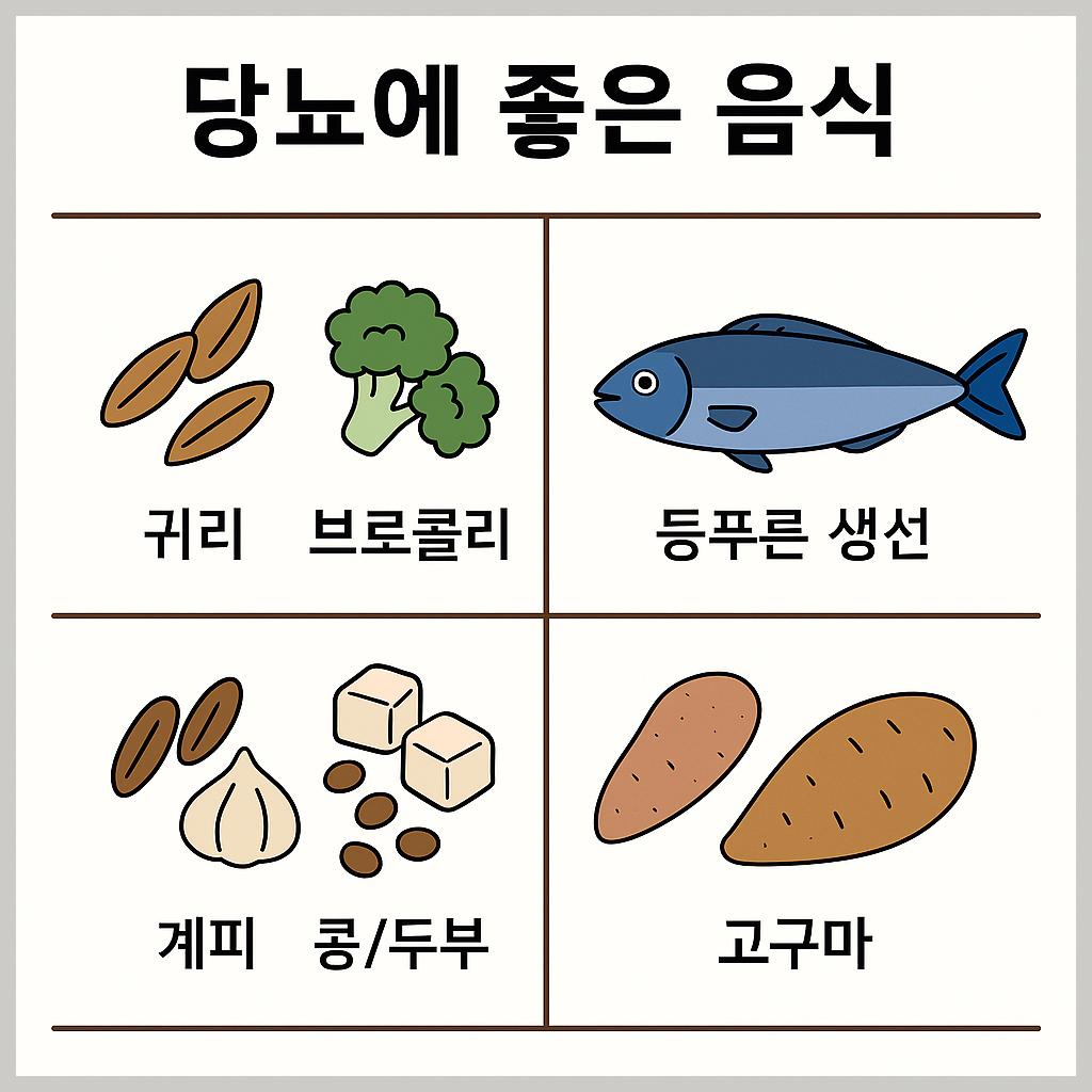 | 등푸른 생선 (고등어, 연어 등) | 오메가3 → 인슐린 민감도 향상 | 주 2~3회 구이나 조림으로 |