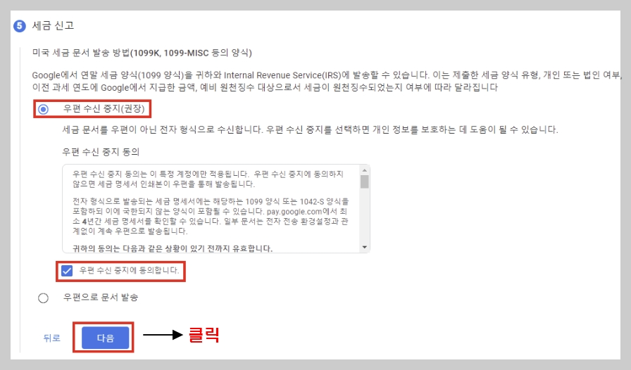세금 신고 항목은 세금 문서를 어떤 형태로 받을지에 관한 것인데, 굳이 불편하게 우편으로 받을 이유가 없으므로