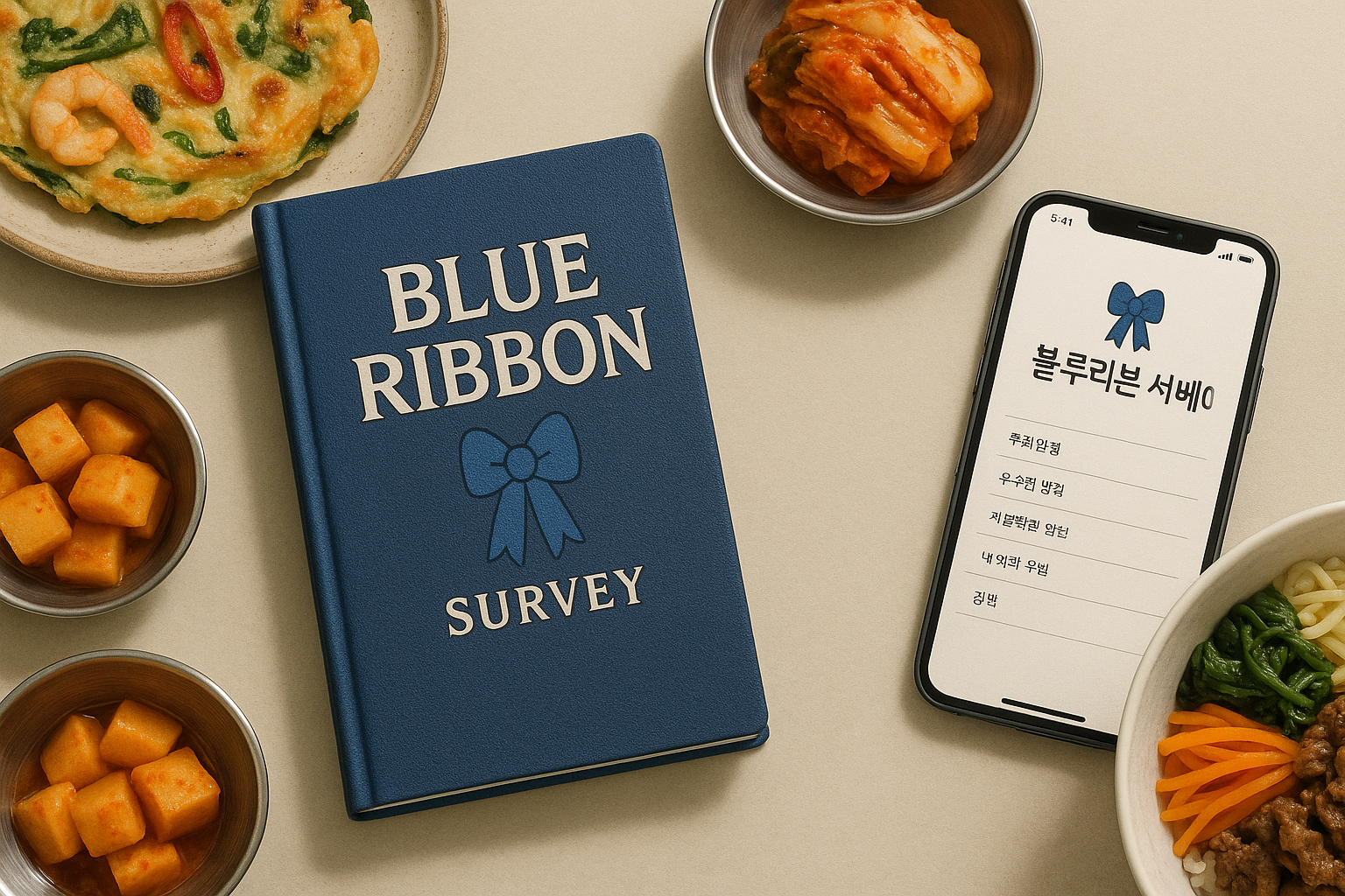 **블루리본 서베이(Blue Ribbon Survey)**는 2005년부터 매년 발간되는 대한민국 대표 맛집 평가 가이드북입니다. 음식 전문가뿐만 아니라 일반 소비자 설문까지 반영한 국내 유일의 대중 참여형 미식 가이드죠.