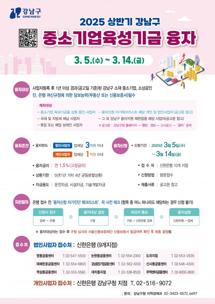 | 소규모 운영 개인사업자 | 최대 1억 원 대출 가능, 강남구청 신한은행 지점 방문 접수 |