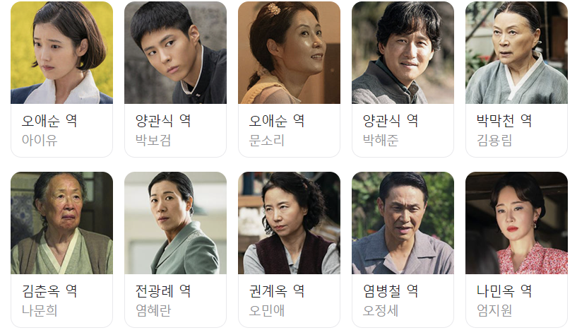 | 아이유 (이지은) | 애순 | 야망 있고 솔직한 제주 소녀. 변화와 바깥세상을 꿈꾸는 인물 |